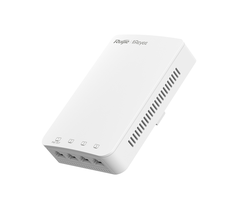 Ruijie Reyee Series RG-RAP1200(P) dual-band gigabit wall plate AP is a high-performance wall plate AP for small and medium-sized indoor Wi-Fi scenarios. With 802.3af/at PoE support, the AP provides 4 LAN ports at the front,including 1 PoE out port, to facilitate the connection of IPTV, IP phone, etc. The AP also provides 1 Gigabit uplink port on the rear panel. Compliant with 802.11a/b/g/n/ac Wave1/Wave2 Wi-Fi protocol, the AP supports MU-MIMO dual-stream technology and offers built-in omnidirectional antennas. It can operate concurrently at 2.4GHz and 5GHz, providing high-speed wireless access of 400Mbps at 2.4GHz, 867Mbps at 5GHz and up to 1267Mbps per AP. Its 86mm